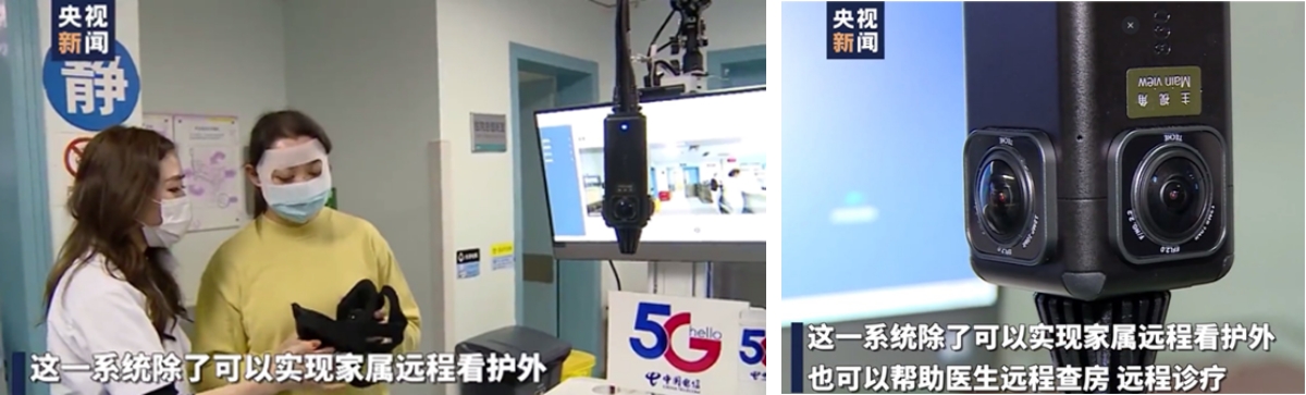 四川首个5G+机器人医疗VR探视系统在华西医院SICU正式启用。利用远程探视系统,病患家人可以看到ICU的360°全景画面,并且能够接收来自ICU病房内病患的声音,同时还可请求双向语音通话。 VR远程医疗探视系统主要由两部分组成,一部分是对患者的视频采集,另一部分是为患者家属提供远程探视。视频采集通常由全景相机完成,将其安装在重症监护室内的每一个病床吊塔的塔壁上,监控该病床上患者的病情动态。除了固定机位,全景相机也被安装在移动型探视车上。凭借灵活的部署方式极大地拓展了医疗探视的应用场景。